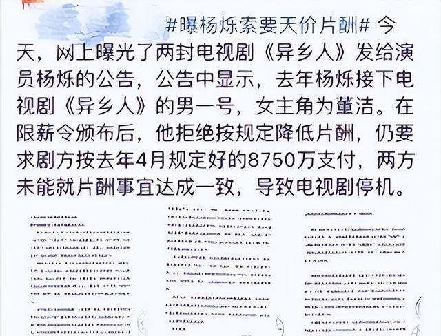 2017年,杨烁的职业发展进入上升期中国配资网,他参与了多档综艺节目,并在影视剧中担任重要角色。然而,到了2019年,杨烁卷入片酬争议事件。当时,国家广播电视总局发布了限薪令,规定演员片酬在影视作品总成本中的比例不得超过一定标准,主要演员片酬占比也有明确限制。杨烁在签署《异乡人》剧组合同时,约定片酬金额超出该规定。剧组在限薪令实施后提出调整方案,杨烁拒绝接受,并以停止拍摄作为回应,导致剧组被迫暂停工作,前期投入面临损失。